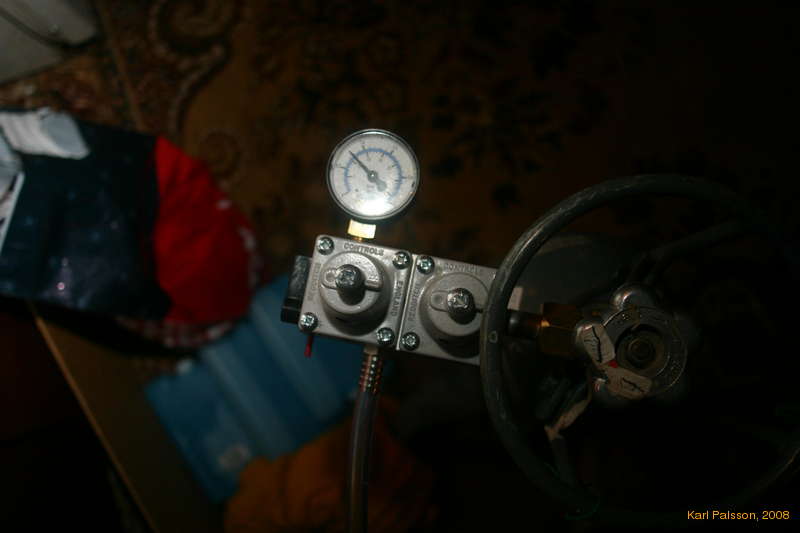 These are the only places on the gas side where I used hose clamps. Getting the 8mm tubing to clamp up leak free on the little skinny hose barbs was a bit of an effort. I'm using stainless (ryðfrír) 10mm hoseclamps from Landvélar, at 60kr each. the 8-14mm worm gear clamps I found at byko didn't work.