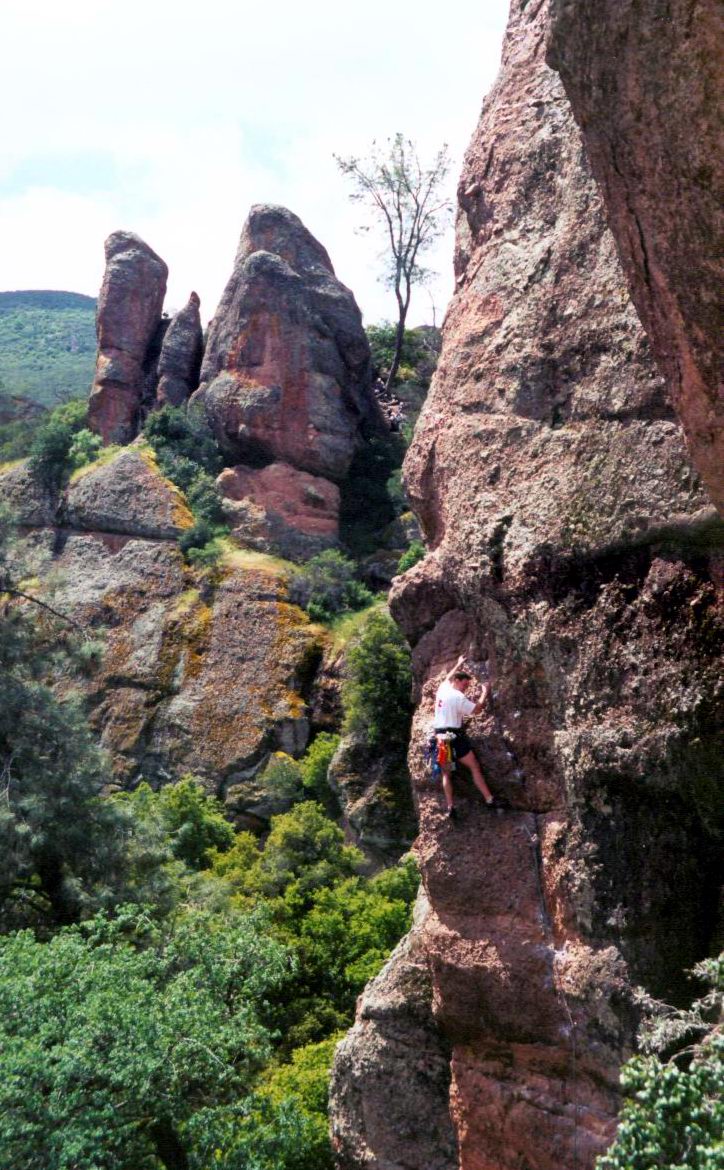 My first outdoor climbing trip in the states, it only took me two and a half months. I went to pinnacles with a group of cisco people and some colleagues of said cisco folk. I wasn't as taken with pinnacles as I would have hoped. Some of it looked interesting, but not enough of it leaped out saying, "CLIMB ME!" for my liking. Some of the classic easy routes were appealing, but there were no hard inspiring lines. At least, not where we were, I sincerely hope that I get to see a better part on another trip.