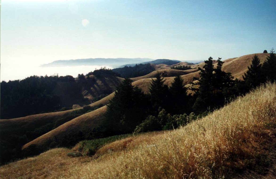 The "Car Ad" section of the Mt Tamalpais road. It had a little pullout with a rough track up onto a knoll. Lovely, lovely place, at a lovely time of the afternoon. Featuring Mike and Marie.