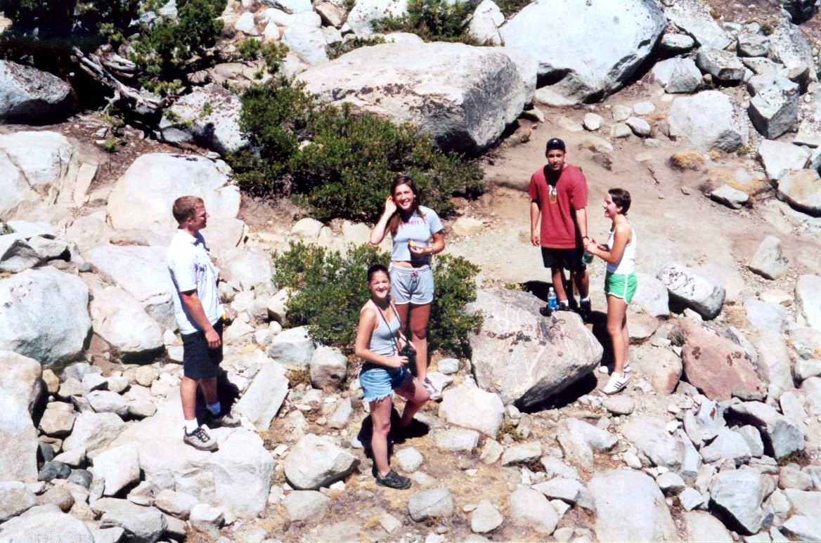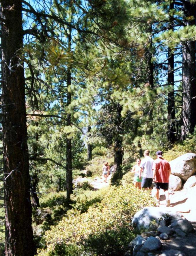 Jenna's friend Molly's parents own a holiday home in South Lake Tahoe, and invited us up for the weekend! We'd go for walks in the woods, and admire the lake and the mountains in the summer, and then kick back at night in the lap of luxury and chat the night away. Or something along those lines. There ended up 10 of us in the end, Molly, Jenna, two of Jenna's friends from back east, Effie and Lizzy, the four canadians, Adam, Greg, Steve and Danny, Marie, and myself. We all drove up in a general mixmash of cars, I think we ended up with five cars. But we all made it, and it all worked out pretty much as planned, bludging by night, and taking in the surrounds by day. We did a short walk out to Cascade falls and looking at Vikingsholme and then sat on the beach for a while. The lake is wonderfully clear, and freezing cold, despite the beach being wonderfully clean and quite warm.