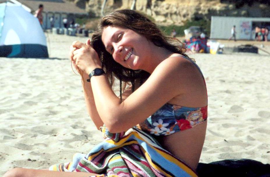 scruzbday-04.JPG Too cold in the water, Jenna will just play with her hair |