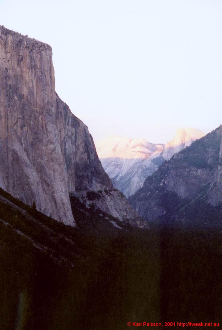El Cap in foreground, Half Dome in far background
