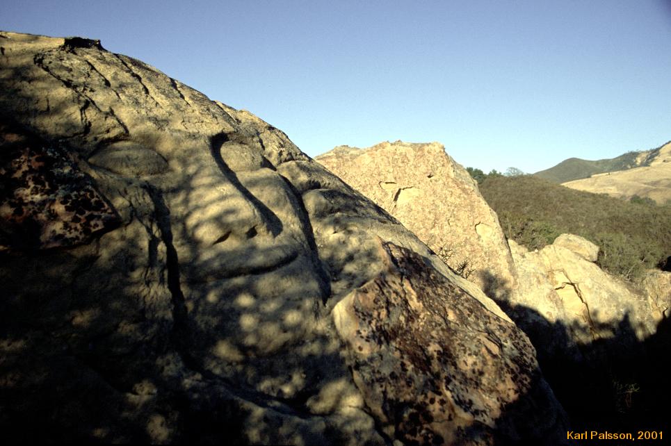 One fine day, Scott and I decided to go for a look at some of the longer routes in Pine Canyon, further into Mt Diablo state park. (Further into for us, it's in the northern part of the park, and the walk in is substantially longer (though still not that long really)) We actually parked in the wrong place, and had a quite lengthy walk, and saw about all there is to see out there really. We didn't even find the climb we were trying to find in the end, though the party of three we met out there managed to find theirs, and they were on their first trip out of the gym. Much kudos to them. (God knows why they chose pine canyon for their first out of gym experience, but that's cool.) We did eventually end up top-roping a nice looking overhanging featured wall that had some crazy looking old button heads on it (it also appeared to be a wall not covered in our guide (Thornburg's "Bay area rock") It was on the shady side of the large boulder near the aztec head. (The topo in Thornburgs guide made very little sense to us) The rock was loose, and we didn't feel like working it, (It was just on the hard side for us, and would have been rewarding to work) given that were were topping it on one of my half ropes we'd brought for "Caves Route" Oh well. We ended up playing pool and drinking beer in a lovely place in Berkeley.