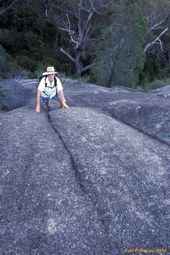 Christmas-2001--05.jpg Mum about to solo up a runnout death slab on the 2nd pyramid ;) |