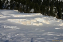 Continued on to Cooke City, the end of the road, where there is much more snow, and much bigger and more imposing mountains. Very cool. Very mountainy. Outside the park, so snowmobiles parked all over the place. Checked into the Soda Butte Lodge, very nice looking place, probably the best place in town, and still only $75/night. Go next door to arrange snowmobile rentals at the petrol station. He fills us in on all the details. Sounds good. Very unlike a rental car. Here, have a highpowered motorized weapon, yeah, it'll do 90mph, you really got to try it out on the roads, here's a map, you just need to practise a bit, see how you feel off trail, get some air under you, just go with what's comfy. Way more likely to do damage than with a rental car, but wayyy less hassle. (More expensive than a days car rental of course :))