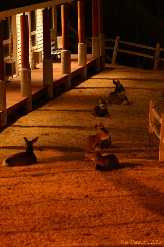 Deer out the front of the Absaroka Lodge, Gardiner
