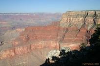 Breakfast at Hi Sahara Oasis, Goff's Road. (US 66) where we had stopped for the night before. Petrol was $2.79 / gallon. Didn't actually need to fill up, don't really know why I did. it was only $1.69 in needles, 36 miles east, and I still had half a tank. It was all we bought from them though, and we used their toilets the night before, and toilets and tables and chairs for breakfast the next morning. Drove east to lunch in Williams, with numerous stops en route to look at the flora. A lot more greenery in the arizona part than any of us had expected. Lots of cacti and stuff though. Quite interesting. Got to the grandcanyon and got ourselves a site, quite pleasant and spacious, $15/night. We'll stay here two nights, and head out of here after a full day tomorrow. Drove back down to the rim and hopped on a shuttle bus out to hermit's rest. This is a shuttle that drops people off and picks them up at various spots on the 8 miles out to Hermit's Rest, which is an old resort type thing, and is now a gift shop and snack bar. There's also a trail head for some of the western end tracks.