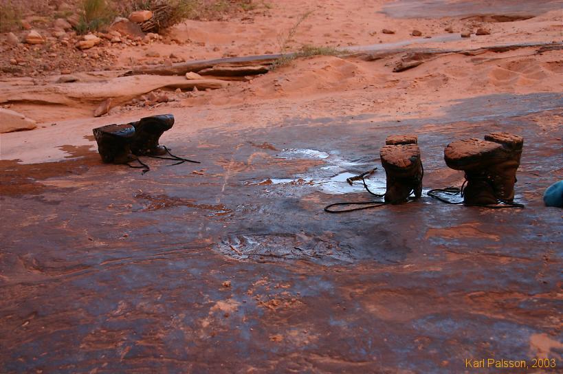 Wet boots after Tunnel Slot, Escalante NM