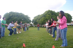 Threatening rain, while we waited in the carpark, as soon as we committed to the afternoon by carrying all the stuff over to a picnic table and having the first contest, a beer chug. Convincingly won by the Ben/James combo, we moved onto events that other people might have better luck with, like hula hooping, football throwing, obstacle coursing, and egg throwing.