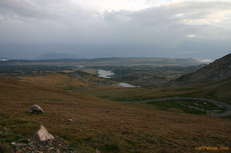 Beartooth Pass area | More high plains on top of the pass | Looking west from the pass area | Sunset over a lake |