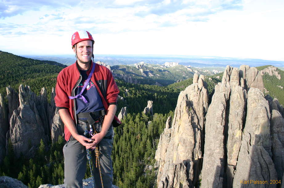 Prev - Up - NextKarl being sane on Spire 4, Rushmore is the block in the background, picket fences behind my right side
