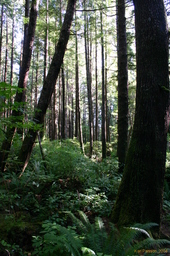 The vegetation here was very cool, and not at all like coastal walking in Australia. Predominately Western Hemlock, and also Sitka Spruce. Only two levels, the big trees, and small ferns and shurbbery. No middle story at all.