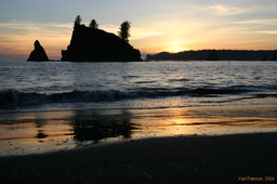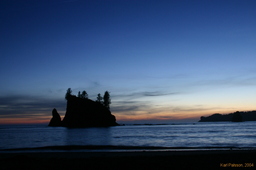 Which was very pretty. Walked about 4-5 miles down the coast from near La Push, and camped out on the beach infront of the Giant's Graveyard/Scott's Bluff sea stacks. Very pleasant time, I took pictures of the sunset, made big rock stacks, and enjoyed walking around the rock pools a little bit the next morning. I really should have worn my wet shoes! I saw more starfish than I'd ever seen before, and giant sea anenomes, and who knows what I would have seen if I'd gone out a bit further.