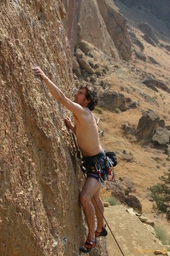 We then hit Cosmos, which is on a beautiful concave face, but is a little long for Marcus's tastes. (almost 25m) A storm blows in, big winds, a few drops of rain, then it's gone again, so we go up to the Pleasure Palace for some fun short stuff on a different layer of rock. And with that we were done. Marcus and Judith headed off to City of Rocks the next morning, and I had previously arranged to meet Liz so was sticking around for one more day.