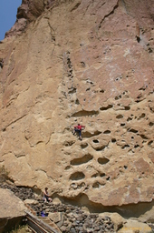 The next day we go hard. We start in the Dihedrals, and do Bunny Face, so Judith can lead something, then I do Jete, take some photos of a guy working on Double Trouble a cool looking 10b arete. I never meet these guys again. I was hoping to see them in the carpark that night, maybe try and sell them some prints, but I was out late. I think the climbers name was Joe, and his friend was from Bend, but who knows.