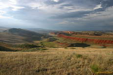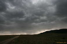 Driving out of Big Sandy, towards somewhere for the night, just to make the drive to Devil's Tower a bit shorter. The weather, which had abated somewhat halfway through the walk out, was back, and gave me some good hard rain as I drove back out the 40 odd miles of dirt back to the highway. Pretty damn good dirt though, if I haven't already mentioned. You could get up to 70mph in places, and not feel stupid.