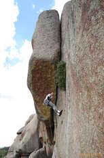 Driving to Vedauwoo, I'd gotten a call from Curt, one of the guides at Devil's Tower. He'd remembered me mentioning Vedauwoo as my next stop, and was down there himself having a few days off climbing by climbing. We hooked up for some climbing for a few days. Worked out well really. He got to put up tough climbs for me, and he had plenty of fat cams.