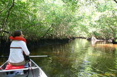 Karl and Katie, driving in Alabama |  Blue Pool, Ichetucknee SP, FL |  Sunset over Monument Lake, Everglades NP, FL |  Canoeing through mosquito swams in the mangroves, Everglades NP, FL |