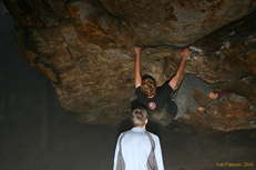 Karl bouldering at Junkyard, New River Gorge, WV |  Karl resting at the Junkyard, New River Gorge, WV |  Wet weather at the New River Gorge, WV |  Giant algae/lichen/moss things, Kaymoor, New River Gorge, WV |