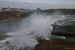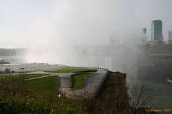 What really irked me was that two of the viewing platforms were fenced off, "for the season" Admittedly, this were two areas that would have serious ice problems in proper winter, and would probably be fairly dangerous places. However this was a bright, fairly warm sunny day, and the fences weren't the least bit permanent. And it certainly wasn't that late in the season. The Park was still operating their tours out to underneath the American Falls. And they shut that down pretty damn quick if it's icy. Turns out they fall under different managements. Slack bastards.