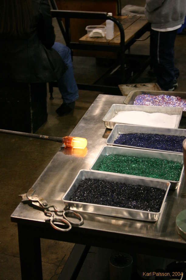Preparing to add colour to the blown glass