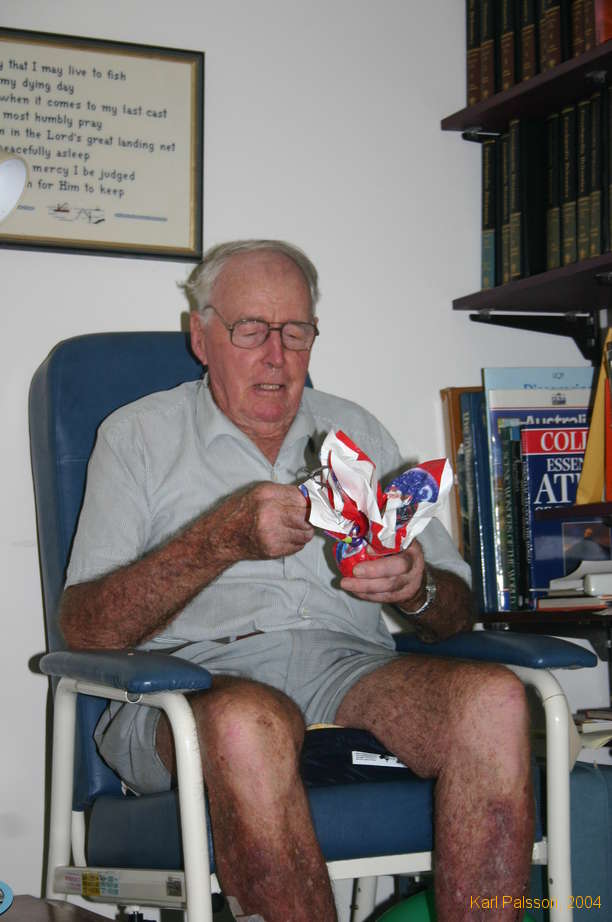 Grandad opening a present