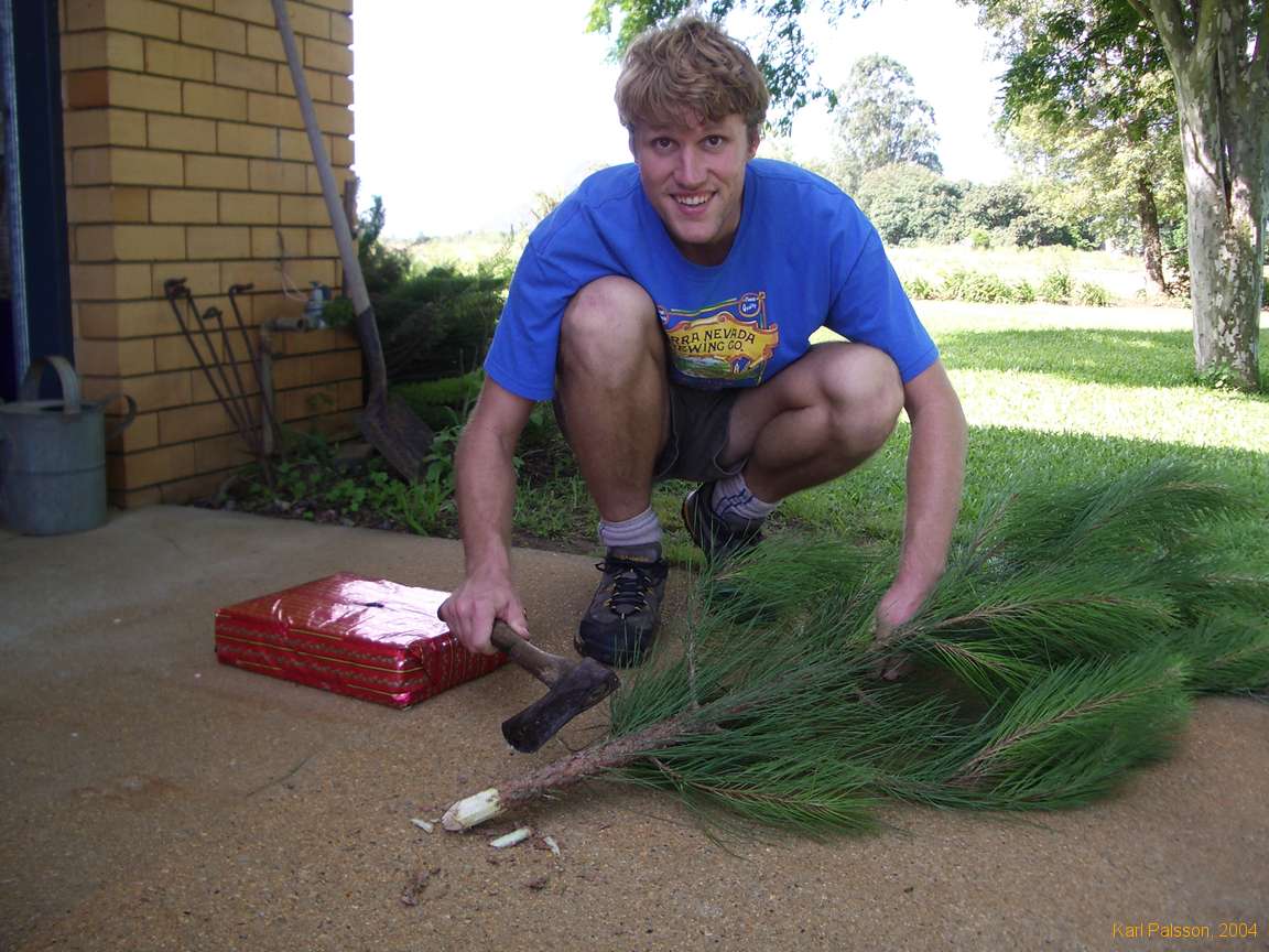 Karl trimming the christmas tree to fit