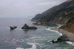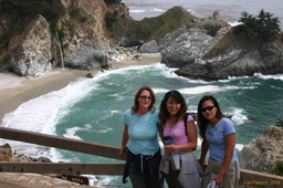 After some shenanigans getting damo to the airport on sunday morning, Lisa and I, James and Junko and Elaine all took off down to Big Sur, crammed into Junko's Mercury Mystique. What a car. We left behind all the luxuries to make it fit, then I at lest slept all the way to Monterey. We got some food for lunch and breakfast, and then continued on down to the camp at Andrew Molera State Park. I was quite surprised to find that they still had plenty of sites, even half way through a holiday weekend.