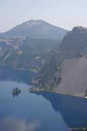 Crater Lake is cool. Very blue. Big, but not so big that it becomes like the sea. Very nice. Took a good hike up Garfield Peak, to see the Phantom Ship. The track is well made, but the rock off to the side looks hideously loose, like all the signs say.