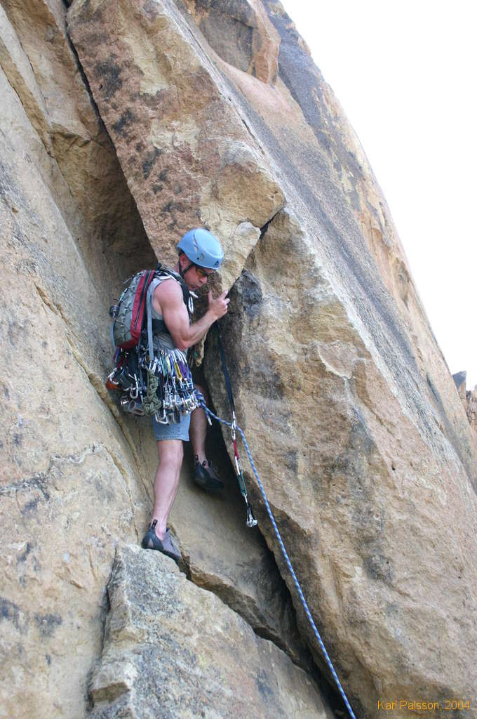 Billy and his monster rack starting up the West Face Variation