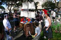 My third official time dressing up like a "dog" and running around san fran towing a sled. This year, the 10th iditarod, was bigger than ever, with my group of friends alone fielding 25odd people (in three teams), up from 11 the year before (in one team). We weren't as hot with the ideas this year, and perhaps not everyone knows the Marx Brothers, but the Barx Brothers we were. Full of moustaches, ties, bad one liners, cigars, and curly hair.