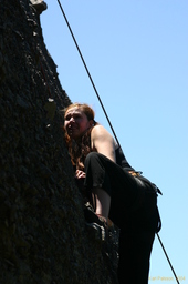 Karalee, a climber from way back, demonstrated that you can climb while dressed up for a night club, you just substitute size 7 boreals for size 8 pumps. I guess this would be the modern era of climbing attire? Compare to Lisa's cotton lycra, and my generic t-shirt and shorts and I think we had most of the recent era's of climbing attire represented. Scott wasn't wearing his long sleeved button down, or we would have had some historical wear as well.