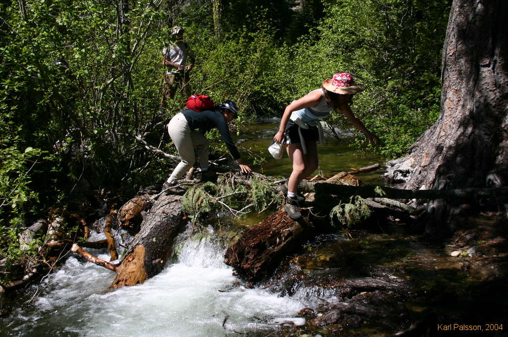 Yet more snow swollen creeks to cross, feat Olivia and Junko