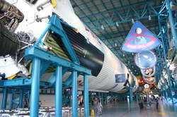 The Saturn V center is pretty neat, but it's on the standard tour ($30) so I felt well gypped. Great big rockets! Had fun reading the other news stories in the news clippings presented for each of the apollo launches. One of my big gripes was how little of it was hands on, (the bulk of the center) or what was hands on was lame and broken. Had a good time wandering around the rocket garden, which had capsules and things you could actually get into. (and even featured a broken one, that had gotten knocked down by.... you guessed it, a hurricane)