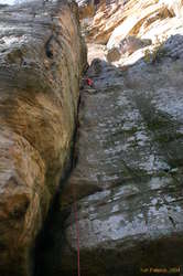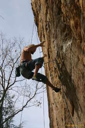 So, how is the climbing? After all, that's why I was there right? Well it was ok. I'd go there again, but I wouldn't make it a destination of the US. I think I'd like to see more of the crags though. Climbed at the Fortress on the first day, but didn't get on any of the classics there. What we did was ok, but largely damp, muddy, dusty, blah blah blah. Some very nice moves in the middle of it all, but nothing mind blowing. Scenery is a lot like the blueies. Heavily vegetated valleys, with scarps of sandstone of varying sizes everywhere. Only the roads go around the bottom, instead of along the top :)