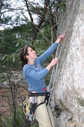 Collette climbing at Roadside