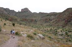 Dan took us up for a hike along the South Franklin Peak. We started off up the trail, but quickly turned off to take a direct path up one of the gullies that leads straight to the ridge line. Dan has walked all over this short range that rises up straight through the middle of El Paso. El Paso forms a bit of a Y, with the Franklin peaks nestling between the top of the Y.