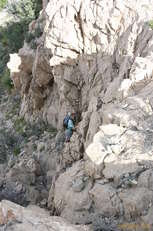 We continued on up the ridge, with Katie trying to take the most death defying, direct route along the absolute highpoints, Dan taking a slightly more cautious path now that the cliff fell off both ways, and me taking a path somewhere in the middle. This took us up to some FAA towers, and presumably some public communications towers as well, given how many of them there were, and then it was time for our next destination. We weren't going to simply wander on back down the track, we were going to "The Window" or el portal, or a mixture of the two in the sort of bastardised white spanish that is fairly common in the area.