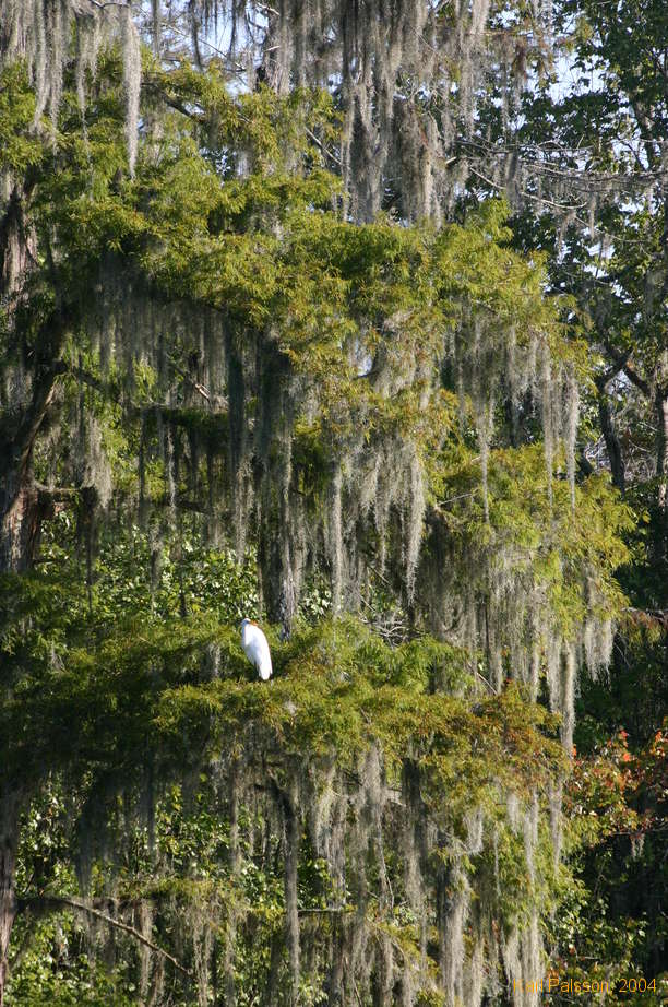 Egret loitering in a Bald Cypress