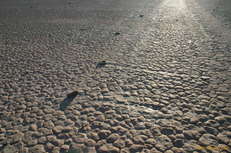 The playa is very hard, and you don't leave footprints on it at all. (Cars leave tracks as they are heavy enough) which is excellent for taking pictures, you can just walk around all over the place and not worry about destroying the tracks. It also means there's no way for your brain to come up with any human interference explanation for the rocks. They simply just moved, and left gouges behind them.