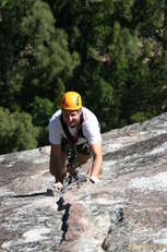 Sept 24, 2004. For whatever reason, I think I was taking yet another rest day, I told Jeff and Rusty that I'd give them a two hour head start and then walk up to the top of Nutcracker to take pictures of them. Jeff was waiting for his partner to return from SF for another go at the Nose, and was using the downtime to actually learn how to crack climb.