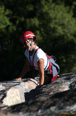 The party of three finally comes up. They had no-one chasing them, but a party of two looked like it had just left the P2 ledge.