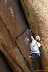 Curt and Bob toproped Fourth of July Crack afterwards, but I didn't feel like even bothering on 5.12+ thin stuff. Matt showed up, and we managed to get a toprope on a slab problem there and had a play for a bit. Bob had been champing at the bit to go and do more hard stuff, but we held him off long enough to get a climb in.