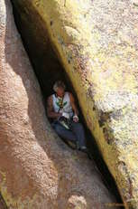 For the next 100 feet or so, Bob grunted, heaved, kicked his legs free, and generally hammed it up for her (and to a lesser extent my camera) Accompanied by frequent queries of "Is she looking?" Bob finally made it to the top, we he could sit long enough to have a smoke while Curt came up.