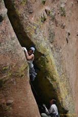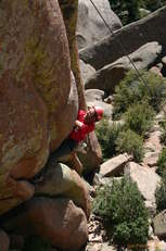 Curt had met Bob, one of the Laramie locals the night before, and we all went out do some hard stuff. Bob was going to lead Horn's Mother, 5.11, overhanging hands and fists. So he did. In fine style, with the rack completely dialled. Curt followed in equally fine style. I attempted to follow in fine style. I then attempted to follow in not fine style. Same result both times. I could do the overhanging hands, I could start the overhanging fists, but I couldn't keep it up. Not even for the 40 feet for the first pitch. Fun to try though. Pretty happy with how I did.