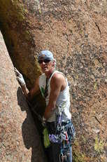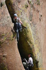 While I was climbing, Bob was taking pictures. Occasionally of me, but mostly of the girl in tight clothes coming up the slab to our left. She ended up sticking around to watch Bob and Curt do the second pitch, to the sheer delight of Bob.
