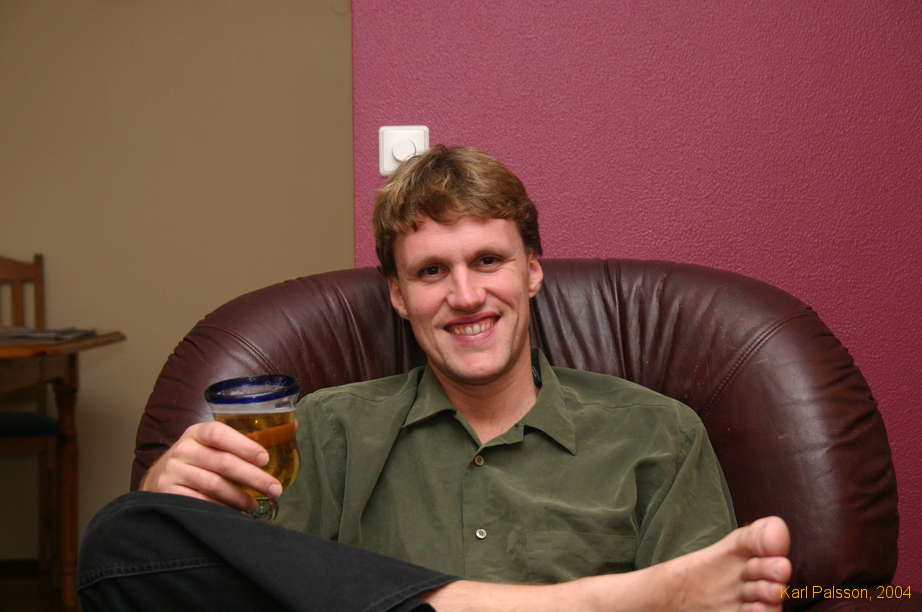 Karl enjoying a refreshing beverage in our loungroom