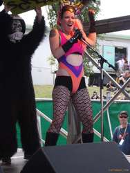 Saw Monster Zoku Onsomb again, who are a fun dance show with music, but it's hard to take them as musicians. Great show though. It's like a stage show, with song and dance. Saw Le Tigre who were really neat, the Donnas, who I missed most of, RJD2, Money Mark, the Chemical Brothers and part of the Beasties. I got bored with the early part of the Beasties show, as we were a long way back, and it was just three guys wandering around on stage and rapping. Later on it apparently all cut loose and they deployed instruments and a drum kit and all sorts more interesting stuff. I had gone to the boiler room for the chemical brothers by then.