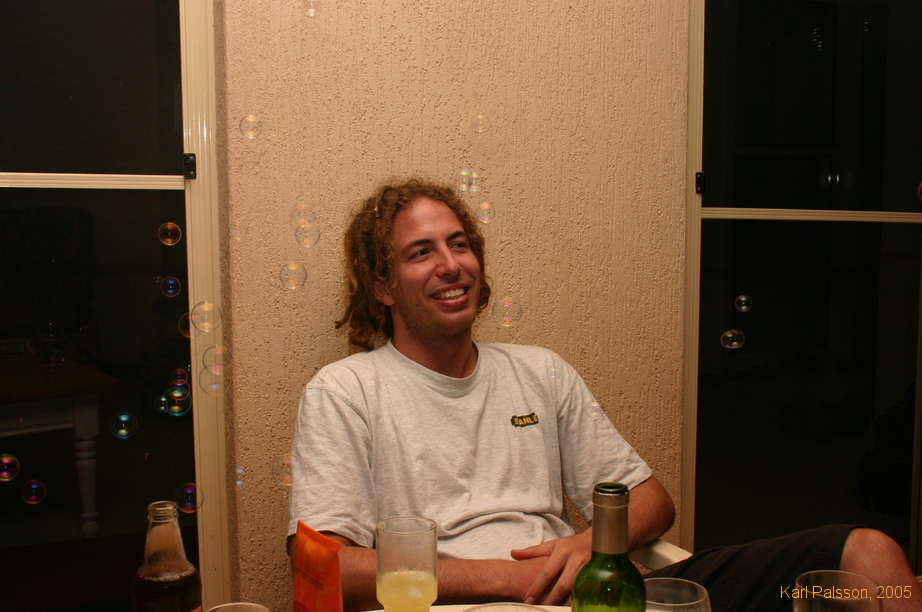With two people blowing at once, you get lots of bubbles
