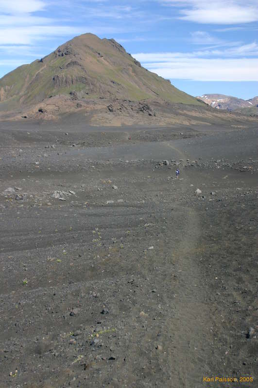 Sand, rocks, and green mountains
